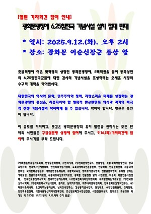 열린 기자회견 참여 안내-광화문광장에 6.25참전국 기념시설 설치 절대 반대