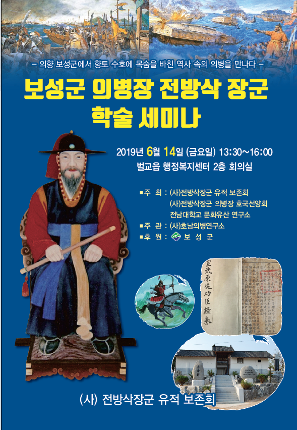 보성군에서는 전방삭 장군 학술세미나를 후원하여 ‘사)전방삭장군유적 보존회’와 ‘사)전방삭 장군호국 선양회’ 그리고 ‘전남대학교 문화유산연구소’의 주최 하에 ‘사)호남의병연구소’ 가 주관하는 세미나를 2019년 6월 14일 벌교읍 행정 복지센터에서 군민 300여명이 참석한 가운데 열렸다.