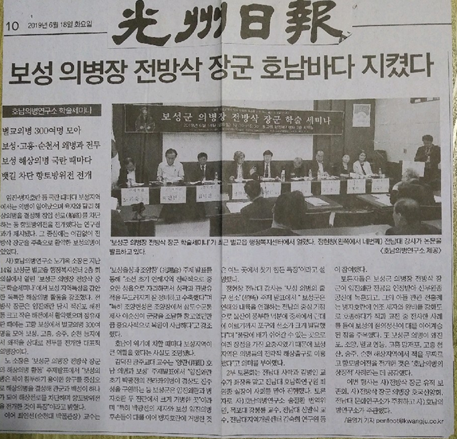 2019년 6월18일자 ⌜광주일보⌟에서는 “보성의병장 전방삭 장군 호남바다 지켰다”라는 제목으로 전방삭 장군 세미나 개최 소식을 대대적으로 홍보하여 주었다. 다른 신문사에서도 전방삭 장군 관련 행사에 아낌없는 홍보를 해주셨는데, 그 수(중도일보외 44개 신문사)가 너무 많아 여기에 다 기록하지 못함이 송구스럽고, 감사하다는 말씀을 드린다.