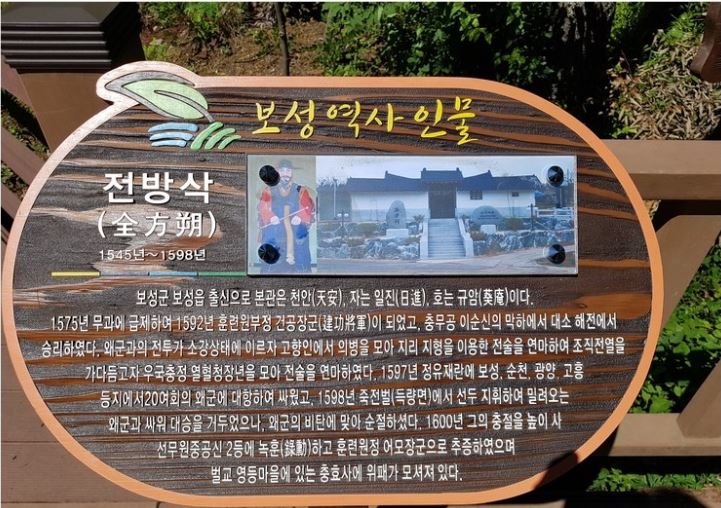 제암산 등산코스에 보성의 역사인물 전방삭 장군의 행적 판이 설치되어있다.