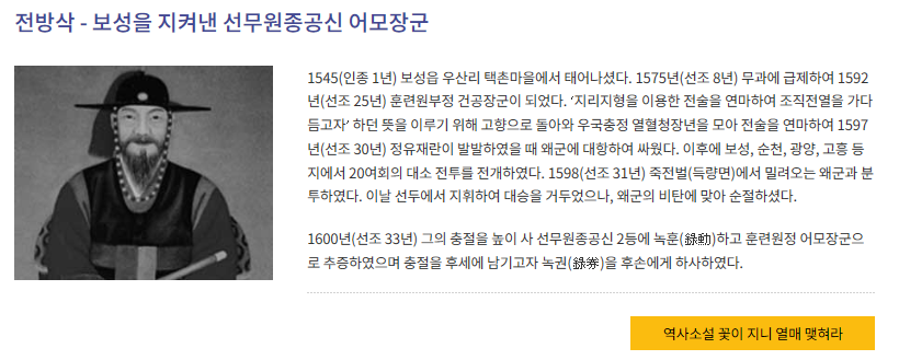 ∎보성군 홈 페이지에 소개하고있는 전방삭 장군