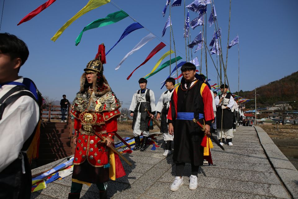 벌교 홍교축제에서 이순신 장군 벌교 입성을 영접하는 전방삭 장군의 재연과 벌교꼬막축제