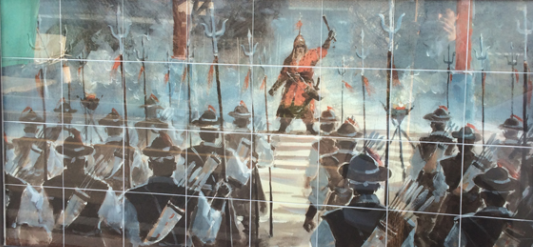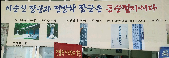 이순신 장군이 모략으로 하옥된 후 누명을 벗고 백의종군 길에 낙안군 낙안읍성에서 벌교로 오시었다. 당시 관군은 와해되어 군량미 한 톨 없고 병졸 역시 극소수인 상황에서 벌교 영등의 동갑내기이자 절친한 전방삭 장군이 의병을 훈련하고 있다는 소식을 들었기 때문이다.