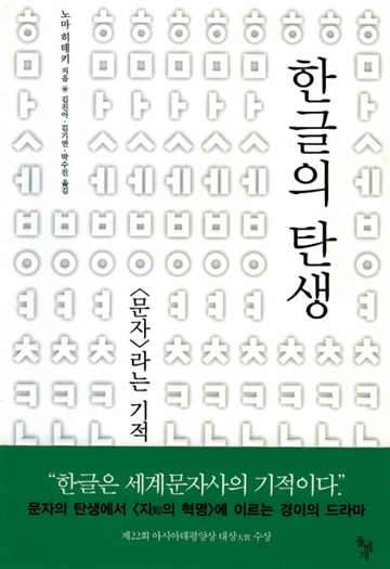 미술가로서 왕성히 활동하던 중 '한글'에 반하여 독학으로 한국어를 연구하다가 성에 안 차서 다시 대학에 입학, 한국어학을 전공한 일본 국제교양대학교 객원교수 노마 히데끼(野間秀樹)의 저서 [한글의 탄생 ㅡ<문자>라는 기적](2012년 간)을 접한 나는 감탄에 탄복을 불금했다.