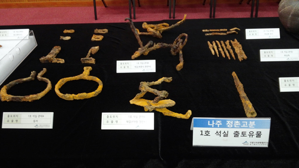 문화재청 국립나주문화재연구소(소장 이상준)는 나주 복암리 고분군(羅州 伏岩里 古墳群, 사적 제404호)과 인접한 정촌 고분(나주시 향토문화유산 제13호)에 관한 발굴조사를 시행을 통해 완벽한 형태의 백제계 금동 신발을 비롯한 다수의 유물을 확인하였다.