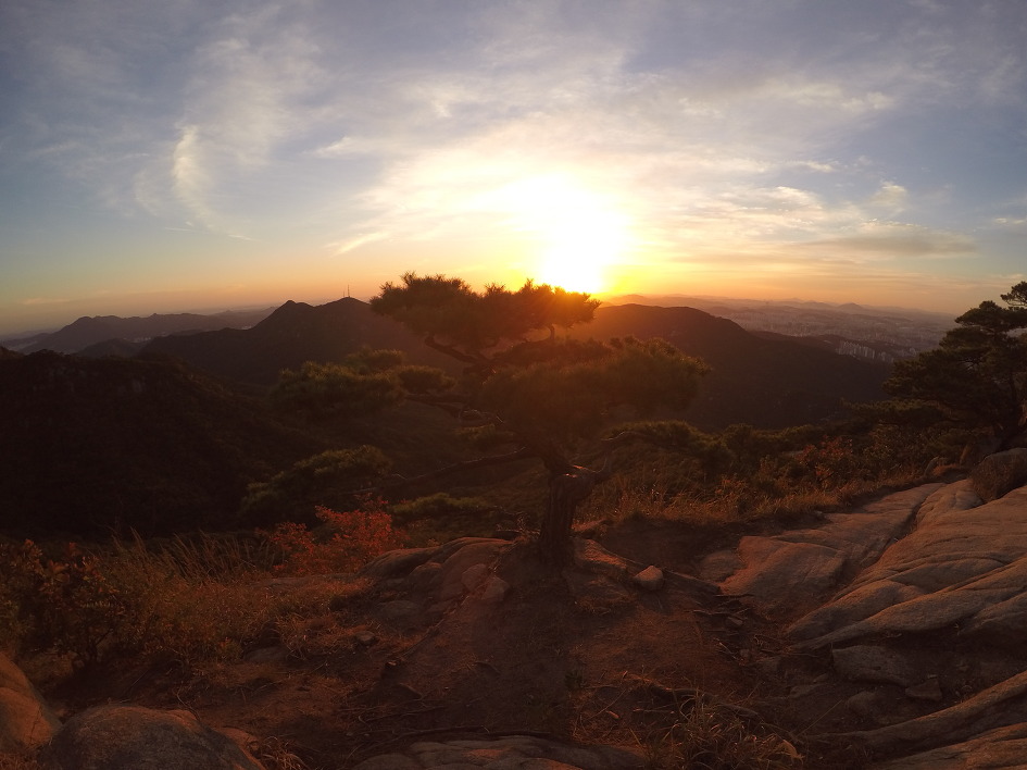 관악산 자운암 능선 국기봉 근처에 명품소나무가 한그루 있다. 등산객들이 기념촬영을 자주 하는 곳인데 해를 등지니 더욱 멋있다.