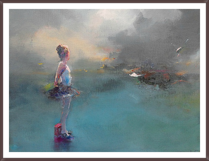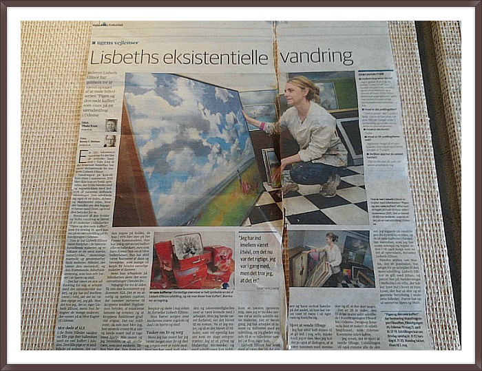 그 날은 마침 여류 화가인 리스베스 엘리노어의 작품 전시 첫날이었다. 그녀가 관객들 앞에서 자신의 작품을 덴마크어로 설명했다. 우린 못 알아들어 좀 답답했지만 그냥 그림을 보는 것만으로도 행복했다. 내가 좋아하는 취향의 그림이었기 때문이다. 그녀는 발레리나와 하늘과 바다와 숲을 주제로 그림을 그렸다. 신문에 난 그녀의 기사에서도 그녀가 그림에서 전하고자 하는 바가 무엇인지 말하고 있을 텐데 덴마크어라서 좀 아쉽다.