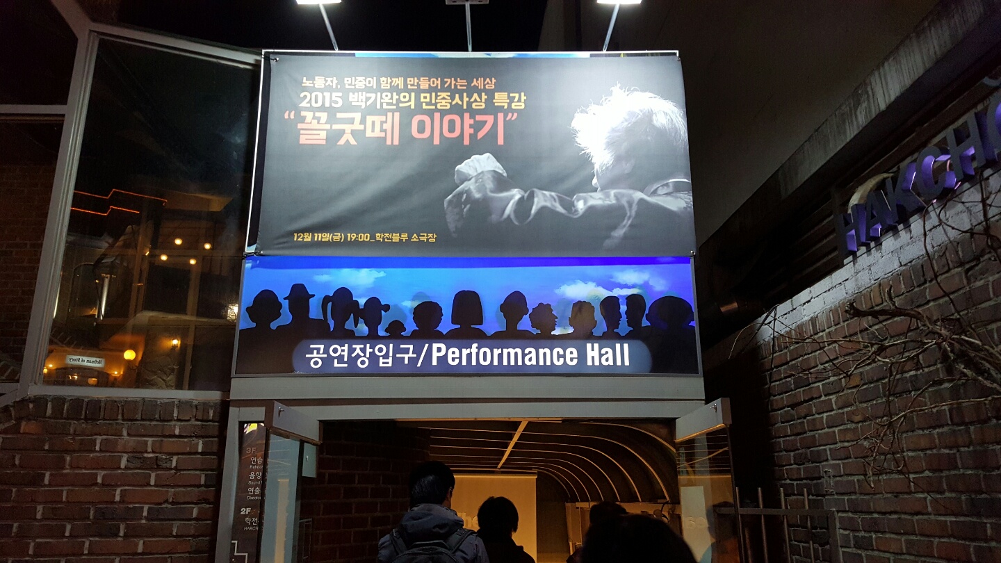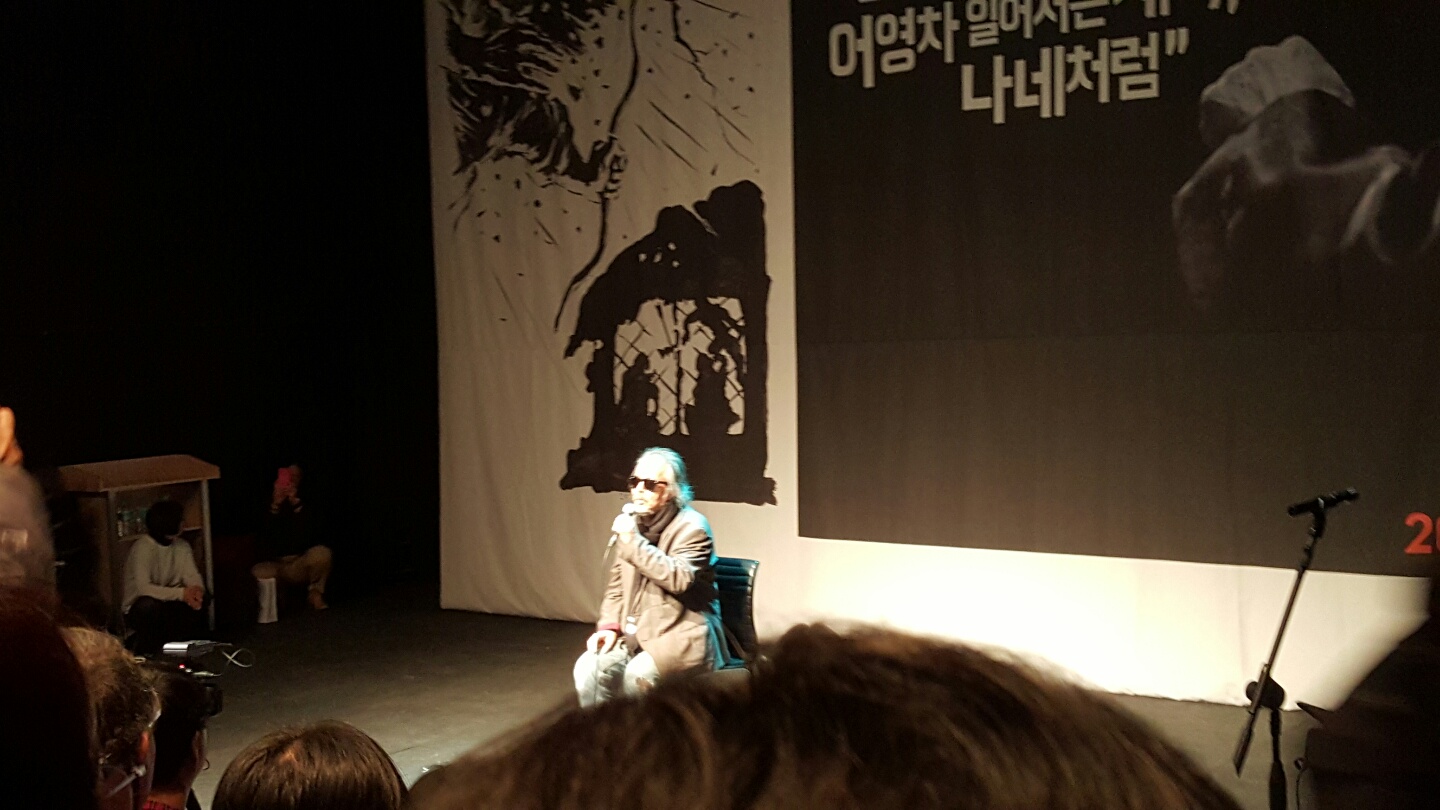 학전블루소극장이 들썩거렸다. 11일 밤 7시부터 백기완 통일문제연구소 소장의 ‘꼴굿떼 이야기’가 소설가 이시백의 사회로 시작되었다. 200석 공간이 모자라 통로마저 메운 방청객들에게 불편함은 아랑곳없었다.