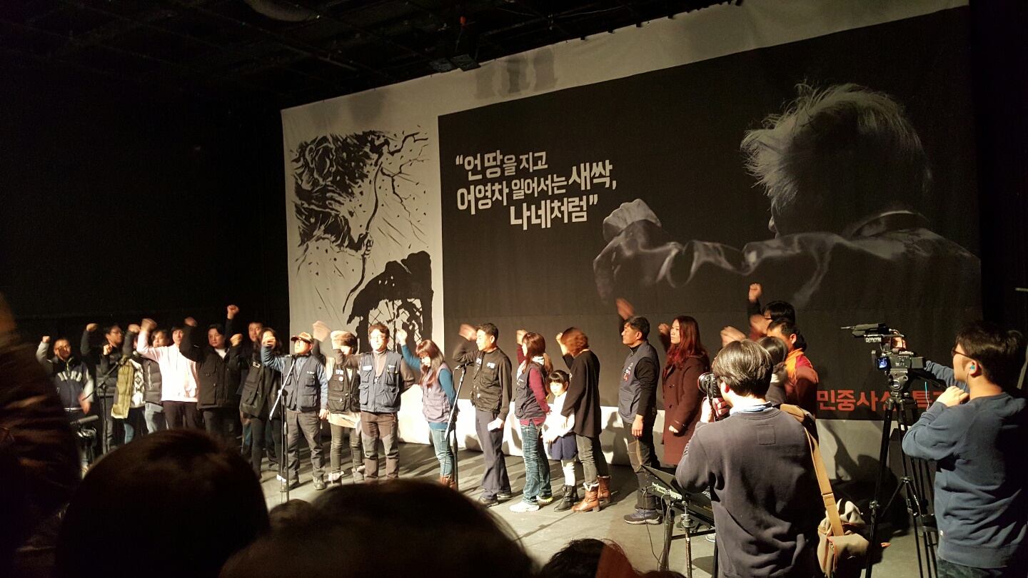 ‘투쟁하는 노동자 합창단’을 선두로 전인권의 <임을 위한 행진곡>이 퍼지면서 장내는 술렁임 대신 숙연함과 환호를 오가며 달구어졌다.