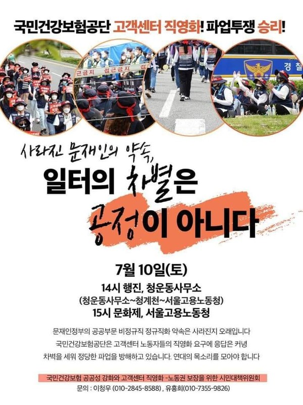 오후2:00 국민건강보험공단 고객센터 직영화! 파업투쟁승리! 행진/ 청운동사무소~청계천~서울고용노동청