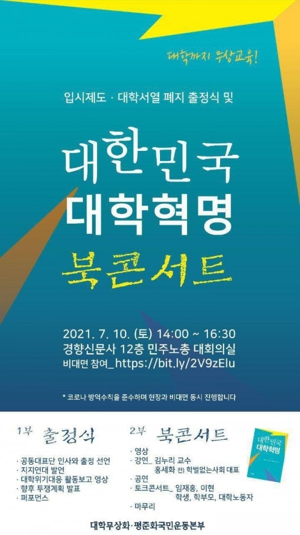오후2:00 대한민국 대학혁명 북콘서트/ 민주노총 12층 대회의실