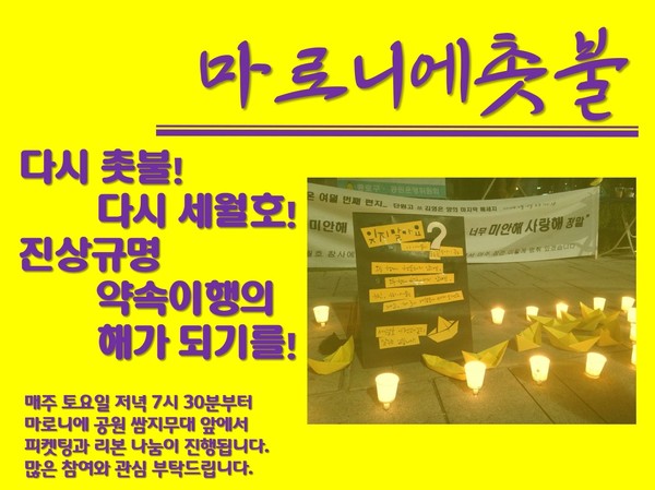 오후7:30 마로니에 촛불문화제/ 마로니에 공원 쌈지무대 앞