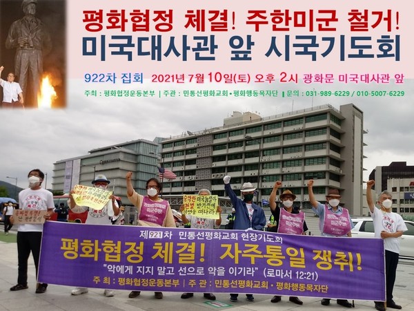 오후2:00 평화협정운동본부/ 평화협정체결.주한미군철수 시국기도회/ 미대사관 앞