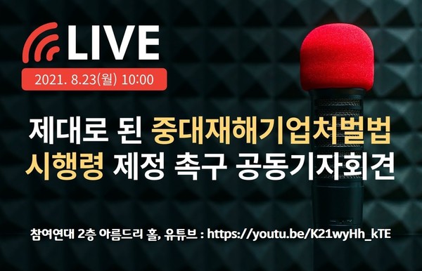 10:00 제대로 된 중대재해기업처벌법 시행령 제정 촉구 공동기자회견 / 참여연대 2층 아름드리홀