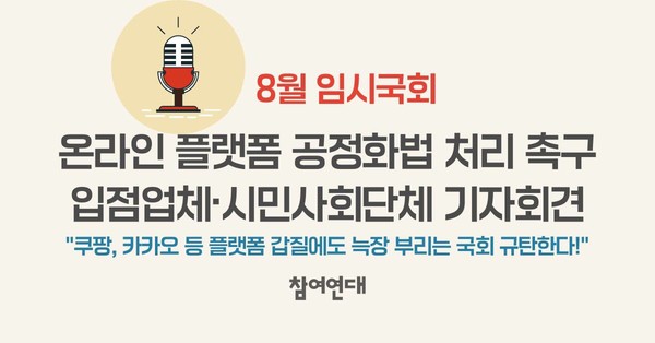 11:00 온라인 플랫폼 공정화법 처리 촉구 입점업체·시민사회단체 기자회견 / 중소기업중앙회 2층 상생룸