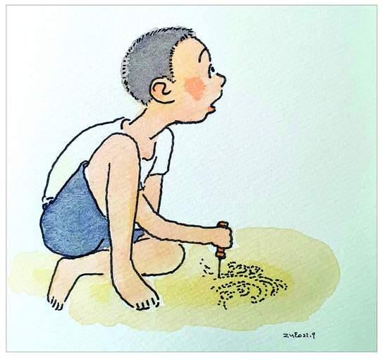 촤촤촤 파도 소리를 내며 나는 어찌 이리 잘 그릴까 하는데 아버지가 오셨다. 물끄러미 장판을 보시더니 “잘 그렸네” 하시고는 장판을 고치셨다. 나는 지금도 잘 그렸다는 그 말이 진심이라고 믿고 있다.