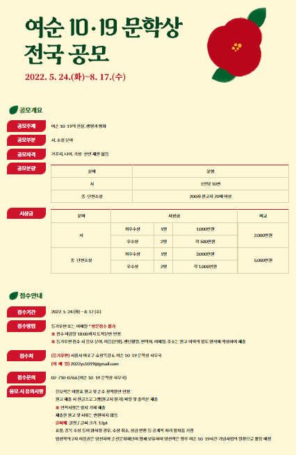 반면에 여순사건은 그동안 주목을 많이 못 받다가 올해에 들어서 여순사건특별법이 국회에서 통과되어서 진상규명과 희생자를 비로소 지원할 수 있게 되었습니다. 여순문학상 제정은 대한민국의 시민들에게 본격적으로 다가가서 알리는 첫 시작입니다.