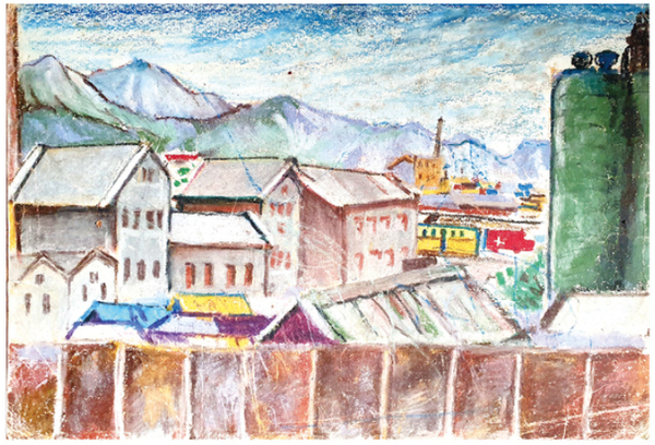 우리 반 박종수는 나에게 정말 잘해줬다. 동생이 미군 부대 양자로 들어가 있어 미제물건들을 나에게 갖다주었는데 특히 노란색 미제 연필은 심이 워낙 단단했다. 연필심 부러뜨려 따 먹기를 할 때 수북이 따도록 해주었다. 그런 종수가 학교에 나오지 않았다. 어느 날 종수가 남의 집 앞에서 구걸을 하는 모습을 보았다. 얼마 후 종수 아버지가 종수를 가마니에 싸서 지게에 지고 산으로 묻으러 가는 모습을 보았다. 동생이 가져온 미군부대 강냉이를 너무 많이 먹어 속이 막혀 죽었다고 했다. 종수집 가는 길, 제일제당과 동명목재상사가 보이는 풍경이다.(5학년 그림)