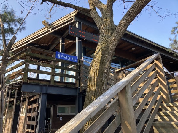 석아, 우리가 아직도 왕권을 상징하는 나부랭이에게까지 납작 엎드려 지내는 건 아니겠지? 그렇지 않고서야 해방된 지 몇 해인데, 왜 일제가 붙인 마을 이름은 그대로 둘까? 이젠 창덕궁 북쪽 봉우리인 응봉(鷹峰)마저 와룡봉이나 와룡산으로 부른다고 하니 말해서 뭘 하랴. 언덕받이에 세워 놓은 큼지막한 ‘와룡공원’ 이름판을 감돌아 오르는데 제법 숨이 차더군. 드디어 말바위 안내소! 줄잡아 한 시간쯤 걸렸어. 산행은 시작도 하지 않았는데 다리가 벌써 풀려 있었어. 잠시 의자에 털썩 걸터앉았지.