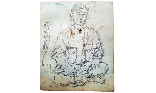 할매가 놀래서 물었다. "월호야 계란이 속이 텅텅 비었다. 이럴 수가 있나!" 월호삼촌은 웃기만 한다. 바늘로 찔러 빼먹기 때문이다. 삼촌은 솜씨가 좋아 가재도구도 예쁘게 잘 만들었고 어머니 시계도 나랑 분해해서 (부속이 하나 남기도 했지만) 다시 완벽하게 조립했다. 나중에 부신서 시계방을 하다가 결국 다시 고향으로 와서 농사를 지었다. 언제나 말 수가 적고 빙그레 웃기만 햐셨지만 어머니가 오해를 받아 쓰러졌을 때는 감연히 결단을 내려 아머니를 구해 주셨다. 가훈은 '정직 성실'이다. 20대 말, 새벽마다 늘 이 군복을 입고 나무하러 가실 때 내가 모델을 해 달라고 했다. (5학년 그림)