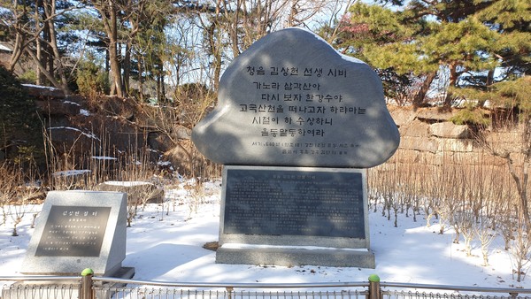 박정희 대통령을 기리는 상석과 청음 선생의 시비