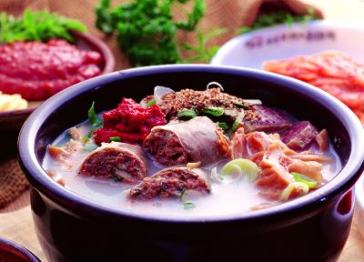 돼지의 창자 속에 쌀, 두부, 파, 숙주나물 등을 양념하여 넣고 삶아 익힌 음식이다.