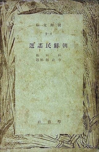 그래 임화는 학예사 주간으로 일본의 이와나미岩波 문고의 문화침략에 대한 대적 의식으로 ‘조선문고’라는 타이틀을 걸고 암흑기 저 야광주와도 같이 조선학의 보물로서의 은칼, 금칼처럼 번쩍이는 걸작들을 줄줄이 쏟아냈거니와, 이 중에서 또한 나의 눈깔을 자극하는 것은 ‘예언例言’(인용자-일러두기)에서 말하고 있듯이 “나 개인으로 보면 년래로 틈틈이 관심해 오든 민요 공부의 일소산으로” 그가 직접 편집한 <조선민요선>(1939)이라는 작품입니다.