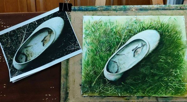 年輕人看了問我:為什麼把魚放鞋子裡。