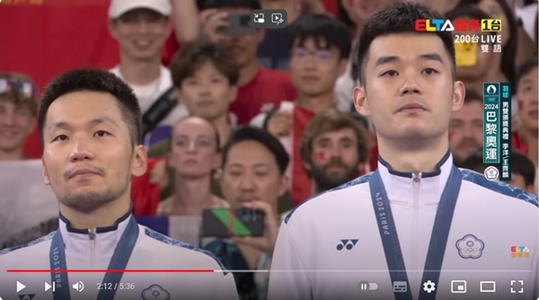 남자 배드민턴 복식 경기가 끝난 후 금메달이 수여될 때 국기가 게양되고 국가가 연주되지만, 대만은 국기를 게양하지 못하고 올림픽 참가 협회기를 게양해야 하며, 대만 국가 대신에 '국기의 노래'를 연주해야 합니다.