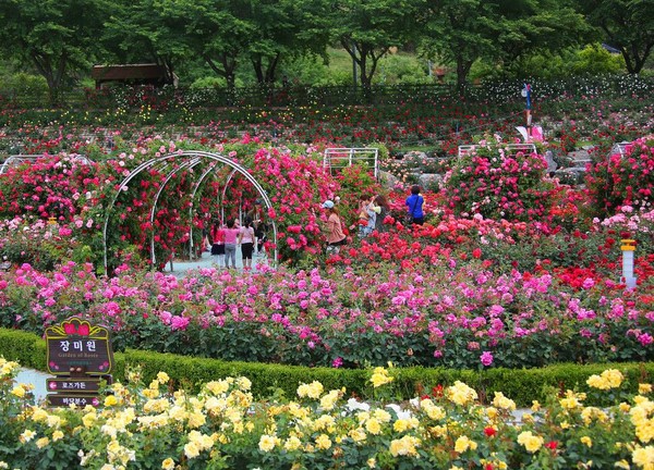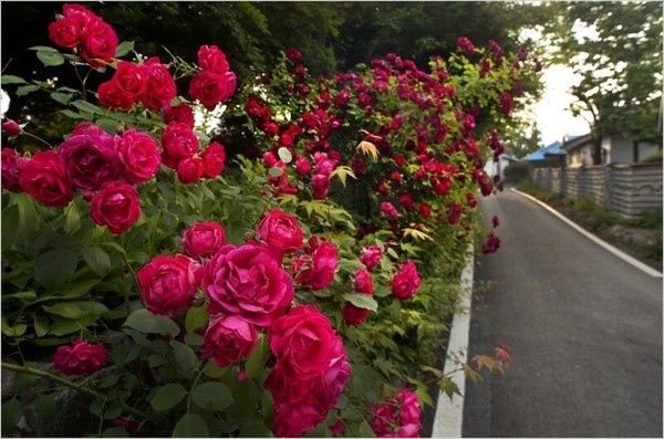 장미는 줄기가 자라는 모양에 따라 덩굴장미(줄장미)와