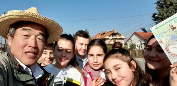 마을 지나면서 한 무리의 초등학생들을 만났다. 아이들에게 팜플렛을 나눠주면서 설명하니 영어를 잘 알아 듣는다. 발음은 필자보다 더 낫다. 이것저것 많이 묻는다. 걸어서 온 것, 앞으로 갈 것을 설명하니 감탄연발이다.