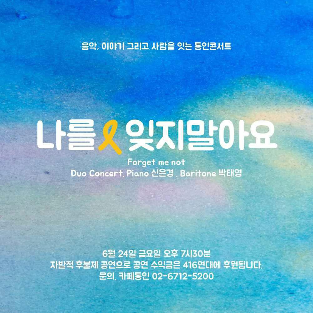 오후7:30 음악.이야기 그리고 사람을 잇는 통인콘서트/나를 잊지말아요/참여연대 1층 카페통인