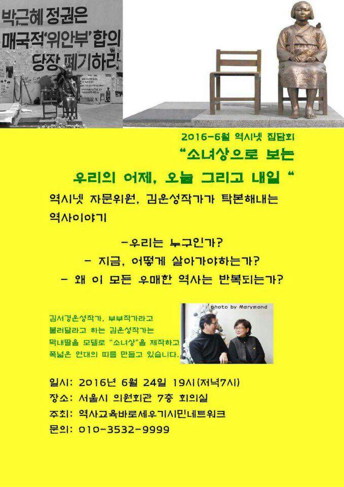 오후6:00~8:00 민문연중부지부.종로엄마들모임/평화의소녀상지키기.국정교과서반대 서명.세월호특별법개정 홍보 서명전/ 경복궁역 3번출구 근처