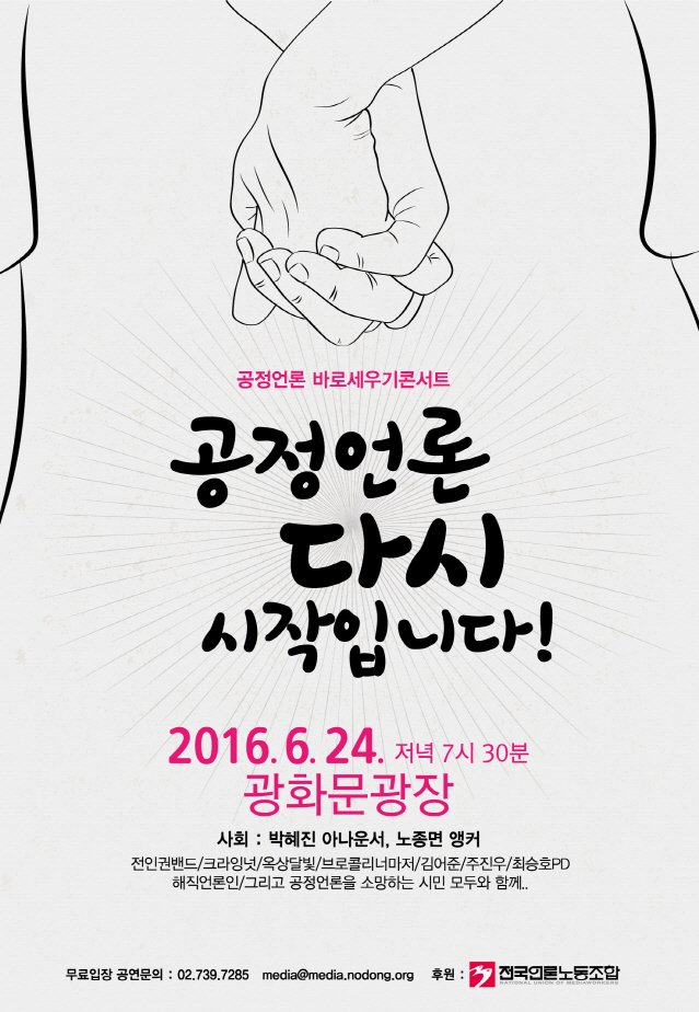 오후7:30 공정언론바로세우기 콘서트/공정언론을 소망하는 시민 모두(노종면 박혜진 사회)/광화문 광장