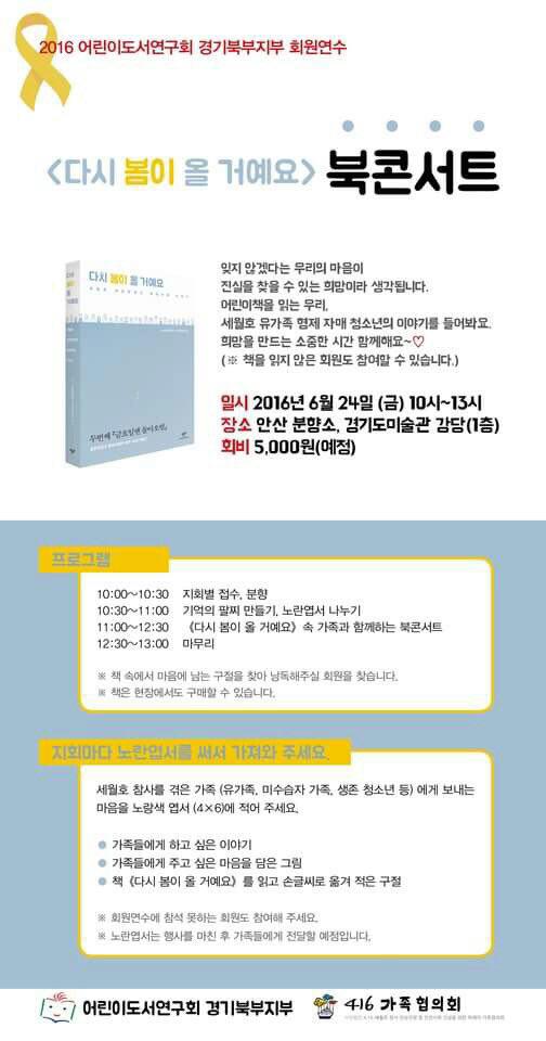 10:00~13:00 '다시 봄이 올 거예요' 북콘서트/안산분향소. 경기도미술관 강당