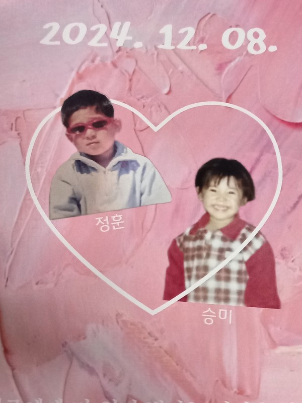 오늘의 결혼식은 여러모로 인상적이었습니다. 먼저 신랑신부의 부모님이 먼저 단에 올라갔습니다. 어머니들은 고운 한복을 입고, 아버지들은 가슴에 꽃을 꽂은 턱시도를 입었습니다. 신랑신부 어느 부모님이 먼저 입장을 했는지는 모르겠습니다. 두 분이 단 앞으로 나아갈 때 화면에는 젊은 날의 결혼식 사진이 나타났습니다. 처녀총각 때의 결혼식을 상기시키는 듯했습니다.