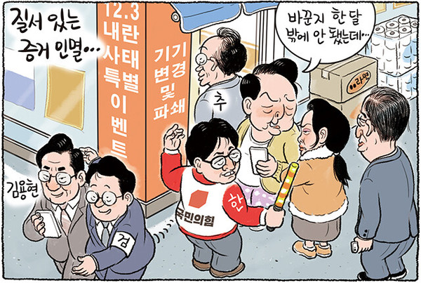 한동훈의 질서 있는 증거 인멸 권범철 기자 kartoon@hani.co.kr 한겨레:온 hanion@hani.co.kr 한겨레신문 주주 되기 한겨레:온 필진 되기 한겨레:온에 기사 올리는 요령 한겨레:온 hanion@hani.co.kr 다른기사 보기 저작권자 © 한겨레:온 무단전재 및 재배포 금지 당신이 봐도 좋은 기사 [최자영의 금요칼럼](112) 헌법재판소도 대법원 같을 것이라 지레 재판소원 제도가 불필요하다는 임재성(변호사)의 조희대론(論) 간호윤의 실학으로 읽은 오늘 지하철역 풍경 (3) [김반아 칼럼] K-스탠다드: 한국 인성 표준(K-Humanity Standard) 설립 제안 [ 시 ] 주님, 가을에는 [ 시 ] 떨어져야 산다 [김종구 특별기고] 검찰 '선택적 집단행동'의 본질 [최자영의 금요칼럼](112) 헌법재판소도 대법원 같을 것이라 지레 재판소원 제도가 불필요하다는 임재성(변호사)의 조희대론(論) 댓글삭제 삭제한 댓글은 다시 복구할 수 없습니다. 그래도 삭제하시겠습니까? 비밀번호 닫기 기사 댓글 0 댓글 접기 로그인 후 이용 가능합니다. 댓글 내용입력 비회원 로그인 이름 비밀번호 댓글 내용입력 댓글쓰기 계정을 선택하시면 로그인·계정인증을 통해 댓글을 남기실 수 있습니다. 회원 로그인 비회원 글쓰기 이름 비밀번호 자동등록방지 로그인 옵션 창닫기 주요기사 가을 이야기 1959년 기해년 <진주형씨족보: 판서공파보> 발문 1 한겨레 본사의 ‘한겨레:온’ 필진으로부터의 의견 청취 누락 유감 [박재동 시사만평] 저눔의 당골네 깃발 [박재동 시사만평] '한겨레 온' 송년 특집: 무엇이 한국의 기적을 만들었나?(예고) 회한의 눈물 ‘여순사건 포고령 위반' 재심서 11명 무죄 선고…“유족들 고통에 위로” 1959년 기해년 <진주형씨족보: 판서공파보> 기(記) 3 1959년 기해년 <진주형씨족보: 판서공파보> 기(記) 2 제주에서 1주일 - 성산일출봉 [공문] <한겨레:온> 기사 관련 언론중재위원회 조정 후속조치의 건 [시] 남영호와 사삼학살 내가 하고픈 말 21