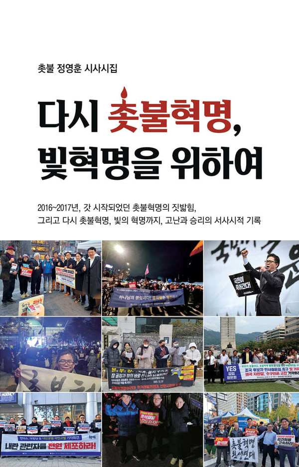 이 시집에는 민주시민들이 어렵지 않게 공감하고 감동하고 호응하여 뜻을 같이할 수 있는 70여 편의 시를 실었다. 원래 이 시기의 시사시만도 백여편이 넘었지만, 지면상 엄선하였음을 밝힌다. 필자가 오래 전부터 틈틈이 써 온 개인적이고 소소한 시들도 많지만, 이 시집에는 그런 시들이 거의 들어가지 못했다. 그래도 잘 보면, 일반적 서정시라 할 만한 시가 시사시 틈새에 끼어 있음을 알 수 있을 것이다. ‘등불을 바닥에 두지 않고 등경 위에 두듯이’, 정치 사회적인 뜻을 나누기 위해 애써 쓴 것을 이 시집 출판을 통해 사람들이 널리 볼 수 있도록 하고자 한다.