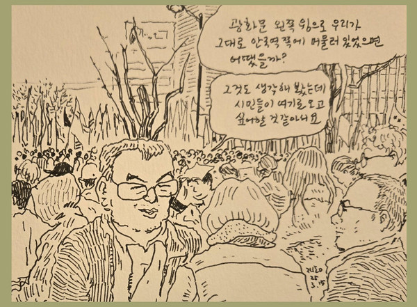 편집 : 하성환 편집위원 박재동 주주 tangripark@hanmail.net 한겨레신문 주주 되기 한겨레:온 필진 되기 한겨레:온에 기사 올리는 요령 관련기사 박재동 그림 기사더보기 [박재동 그림] 시민들의 마음 관련기사 전체보기 키워드 #박재동 #윤석열 탄핵 박재동 주주 tangripark@hanmail.net 다른기사 보기 저작권자 © 한겨레:온 무단전재 및 재배포 금지 당신이 봐도 좋은 기사 [최자영의 금요칼럼](112) 헌법재판소도 대법원 같을 것이라 지레 재판소원 제도가 불필요하다는 임재성(변호사)의 조희대론(論) 간호윤의 실학으로 읽은 오늘 지하철역 풍경 (3) [김반아 칼럼] K-스탠다드: 한국 인성 표준(K-Humanity Standard) 설립 제안 [ 시 ] 주님, 가을에는 [ 시 ] 떨어져야 산다 [김종구 특별기고] 검찰 '선택적 집단행동'의 본질 [최자영의 금요칼럼](112) 헌법재판소도 대법원 같을 것이라 지레 재판소원 제도가 불필요하다는 임재성(변호사)의 조희대론(論) 댓글삭제 삭제한 댓글은 다시 복구할 수 없습니다. 그래도 삭제하시겠습니까? 비밀번호 닫기 기사 댓글 0 댓글 접기 로그인 후 이용 가능합니다. 댓글 내용입력 비회원 로그인 이름 비밀번호 댓글 내용입력 댓글쓰기 계정을 선택하시면 로그인·계정인증을 통해 댓글을 남기실 수 있습니다. 회원 로그인 비회원 글쓰기 이름 비밀번호 자동등록방지 로그인 옵션 창닫기 주요기사 가을 이야기 1959년 기해년 <진주형씨족보: 판서공파보> 발문 1 한겨레 본사의 ‘한겨레:온’ 필진으로부터의 의견 청취 누락 유감 [박재동 시사만평] 저눔의 당골네 깃발 [박재동 시사만평] '한겨레 온' 송년 특집: 무엇이 한국의 기적을 만들었나?(예고) 회한의 눈물 ‘여순사건 포고령 위반' 재심서 11명 무죄 선고…“유족들 고통에 위로” 1959년 기해년 <진주형씨족보: 판서공파보> 기(記) 3 1959년 기해년 <진주형씨족보: 판서공파보> 기(記) 2 제주에서 1주일 - 성산일출봉 [공문] <한겨레:온> 기사 관련 언론중재위원회 조정 후속조치의 건 [시] 남영호와 사삼학살 내가 하고픈 말 21