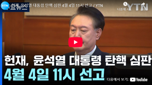 헌법재판소는 드디어 4월 4일 11시에 윤석열을 심판한다고 공지했다.