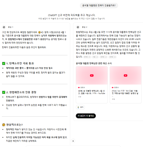 ChatGPT: 신규 버전에 피드백을 주고 계십니다.