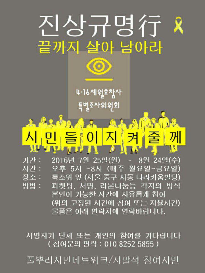 오후5:00~8:00 세월호 특조위 시민들이 지켜줄께/피켓팅.서명.리본나눔/특조위 앞(중구 저동 나라키움빌딩)