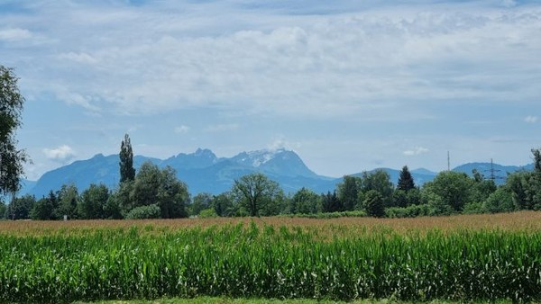 다음날도 나그네에게 클락슨신호와 엄지척을 올리는 자동차가 많다. 아마도 걸어서 알프스를 넘겠다고 하는 사람이 거의 없는듯. 산허리에 걸린 구름을 보면서 평지를 걷는 것은 라오스 이래로 처음인듯.