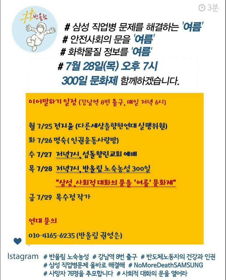 오후6:00 삼성직업병문제 올바른 해결을 촉구하는 반올림 농성/ 이어말하기 (목수정 작가)/ 강남역 8번출구