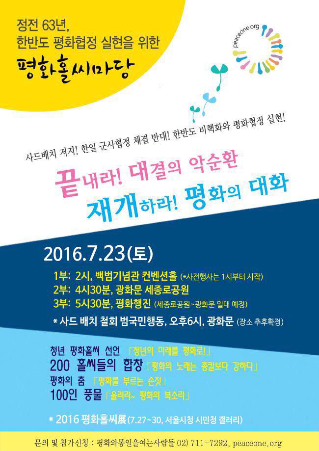 * 평화협정 실현, 사드 배치 반대와 한반도 평화를 위한 서울시민청갤러리 전시회/시민청 갤러리, 7.27~30.(토) 20시까지