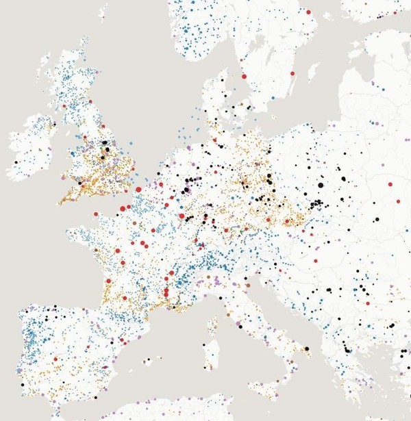 이 지도는 유럽의 발전소 분포지도다. 이 자료를 보면 알프스의 수력발전이 엄청남을 볼 수 있다. 알프스의 위용은 자연뿐 아니라 인공문명에도 뻗치고 있다. 이탈리아는 탈원전 모범국가다. 로마시절부터 르네상스에 이르기까지 오랫동안 인류사를 리드해왔던 이탈리아로부터 얻을 지혜는 무궁무진하지만, 그런 가운데 현대에 있어서도 모범이 되는 것은 바로 탈원전의 결행과 그 흐름이다.