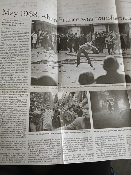 -프랑스 '68혁명 50주기 기념 <뉴욕타임즈> 기사에서 캡쳐(2018.5.7)