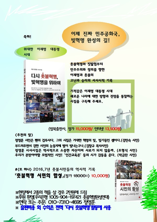 * 『촛불혁명,시민의 함성』,『다시 촛불혁명 빛혁명을 위하여』출판