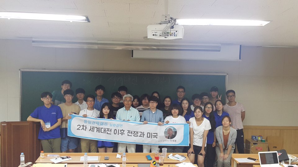 지난 8월1일 한신대학교에서 대학생을 대상으로 하는 '통일경제캠프'가 열렸다. 통일경제포럼 청년학생위원회 주최로 3박4일간 진행된 캠프는 김진향 전 카이스트 대학원 연구교수, 김은진 원광대 법학교수, 이재봉 원광대 정치학교수 등 많은 석학들의 강연과 토론으로 이어졌다. 캠프를 통해 대학생들은 통일에 대해 심도 있게 논의해볼 수 있는 좋은 기회를 가졌다. 특히 <20세기 이후 전쟁과 미국>이라는 주제로 진행된 원광대학교 이재봉 교수의 강의는 한미관계의 각도에서 바라보는 한반도 통일 전략에 대해 생각해보는 계기를 마련했다.