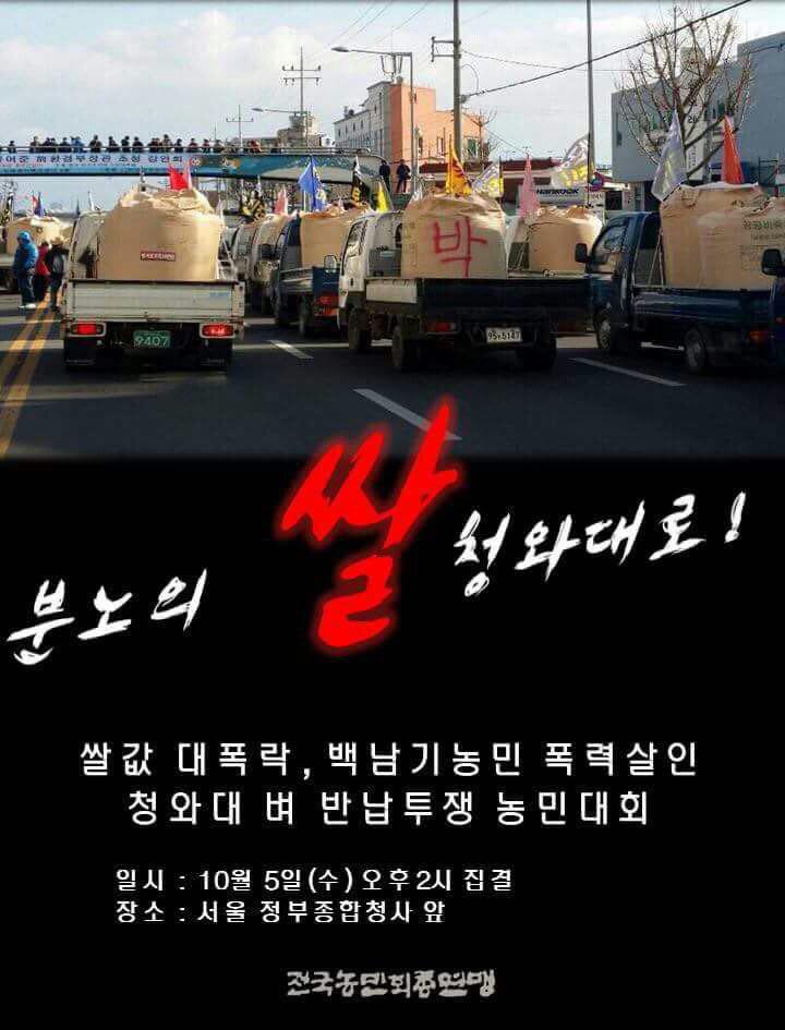 오후2:00 전국농민회총연맹/청와대 벼 반납투쟁 농민대회/서울정부청사 앞